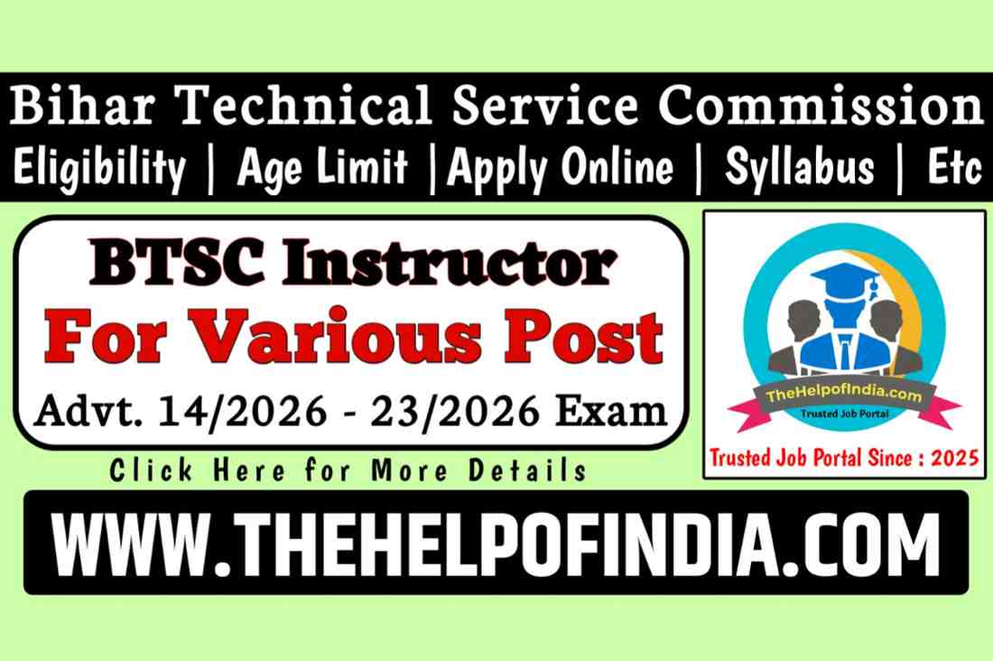 🚨 BTSC Instructor (Various Post) Recruitment 2026 Notification Out The Bihar Technical Service Commission has released a notification for the