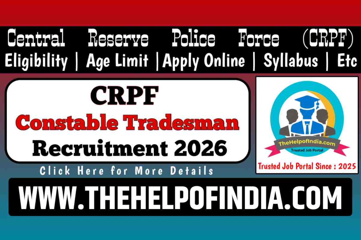 🚨 CRPF Constable Tradesmen Recruitment 2026 Notification Out The Central Reserve Police Force has released a notification for the recruitment