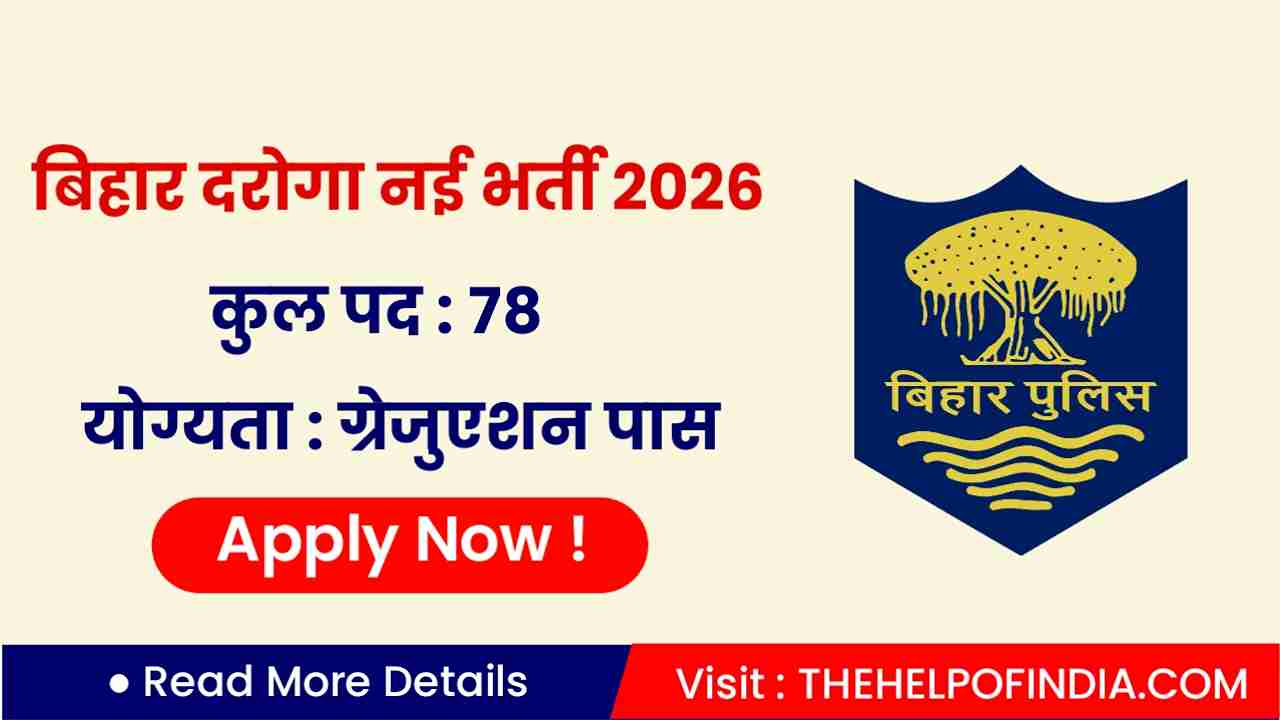 Post Information : Bihar Police Subordinate Service Commission (BPSSC) has released the official notification for the Bihar Police SI Prohibition Recruitment 2026. A total of 78 posts will be filled under this recruitment. The opening date for online application is 27/01/2026 and the closing date is 27/02/2026.Candidates can apply by visiting the official website bpssc.bihar.gov.in.