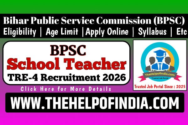 Post Information : The Bihar Public Service Commission has released the notification for the BPSC Bihar School Teacher TRE-4 Recruitment 2026. A total of 45195 posts will be filled under this recruitment. The opening date for online application is February 2026 and the closing date is March 2026.Candidates can apply by visiting the official website bpsc.bihar.gov.in.