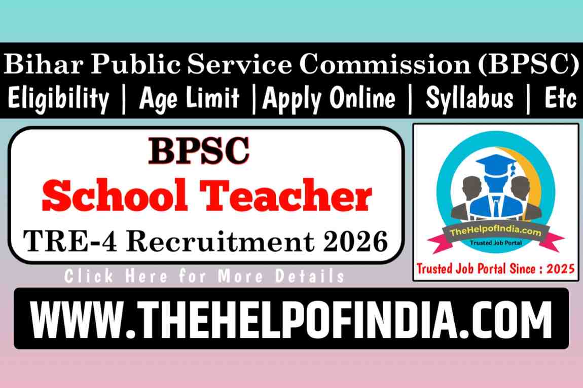 | Short Information | Bihar Public Service Commission has released the Official Notification for BPSC School Teacher TRE-4 Recruitment 2026. Online Application Start on April 2026 & Last Date is May 2026. All Eligibility and Interested Candidates Can Read Official Advertisement Before Apply Online Now in the Given Link Below. |