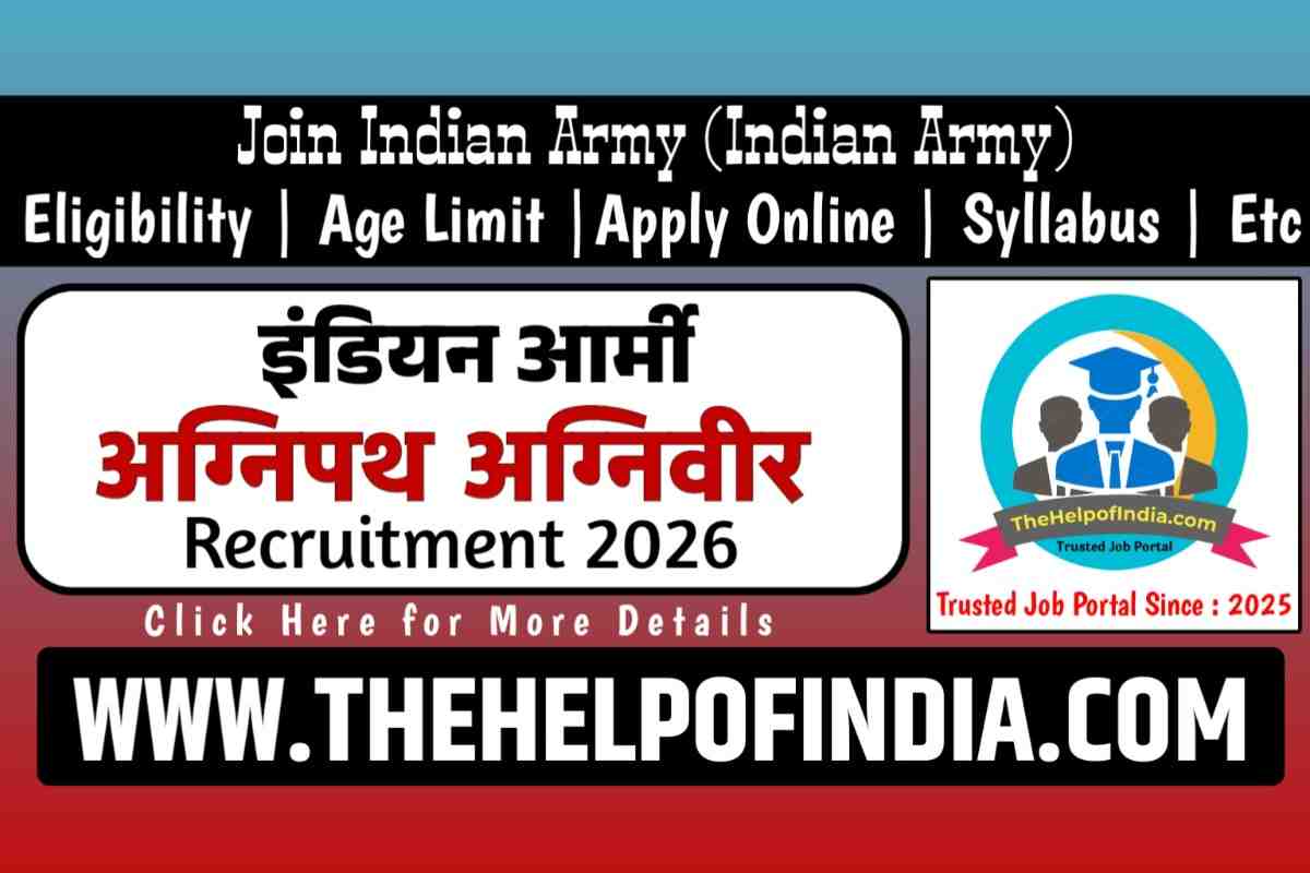 Post Information : The Indian Army has released the notification for the Indian Army Agniveer Rally Recruitment 2016-27. The opening date for online application is 13/02/2026 and the closing date is 01/04/2026. Candidates can apply by visiting the official website joinindianarmy.nic.in.